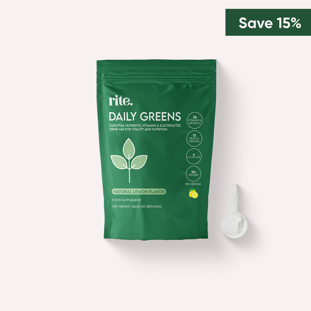 يمكن تناول Daily Greens مع Rite's Gut Health حيث يعمل كلاهما معًا بشكل جيد لدعم جهازك الهضمي وتحسين صحة الأمعاء بشكل عام!