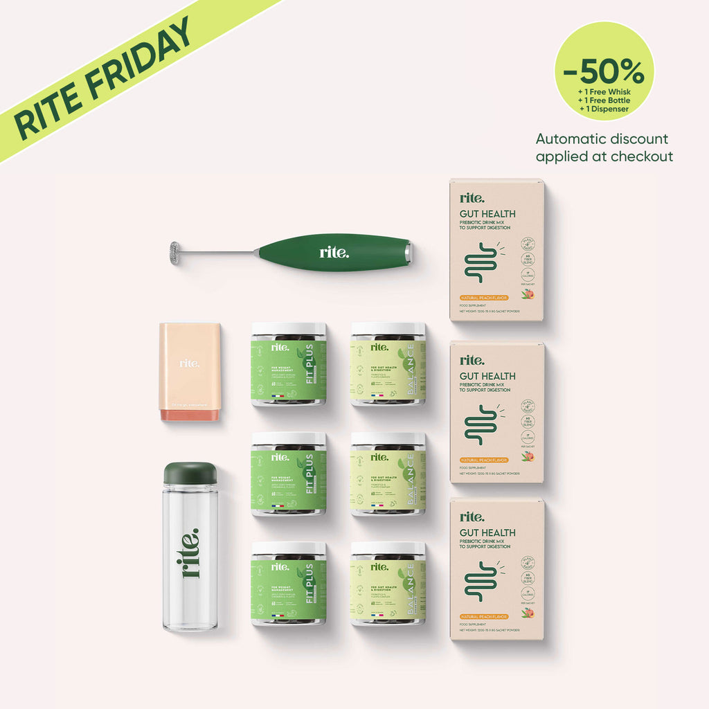 Enjoy our offer with 25% discount on the Gut Health Ultimate Pack + 1 free bottle, 1 gummies dispenser, and 1 electric whisk!