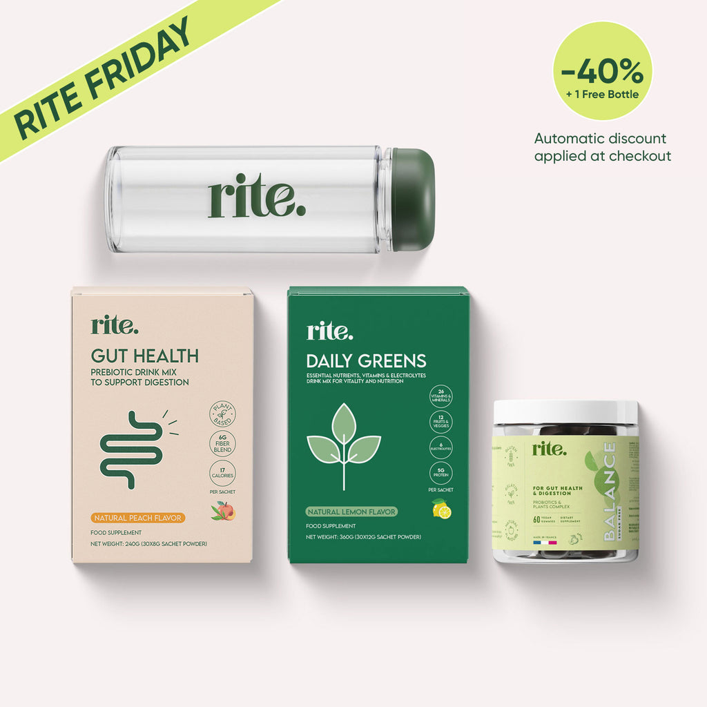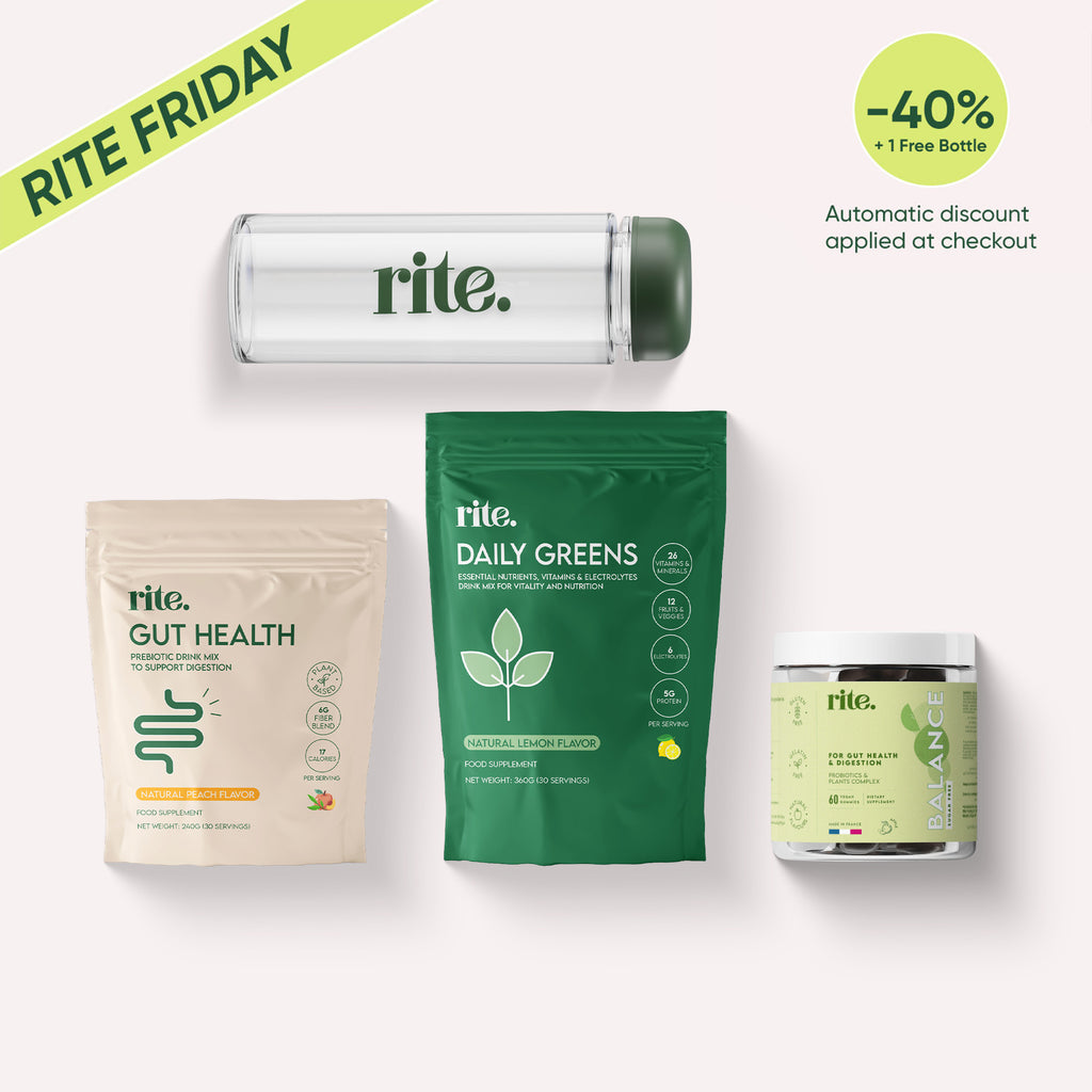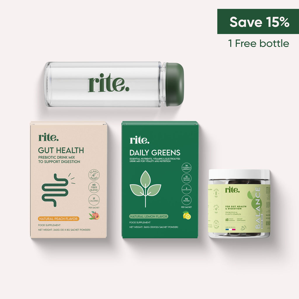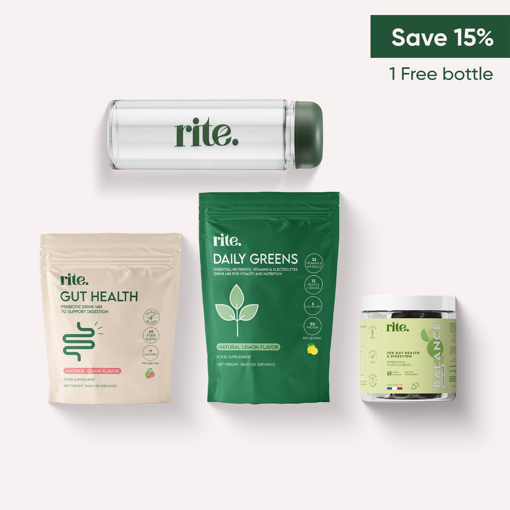 Enjoy our offer with 15% discount on the Greens & Gut Ritual Pack + 1 free bottle!