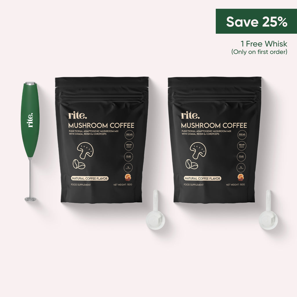 With x3 less caffeine of regular coffee, Rite Mushroom Coffee delivers calm, focused energy, no jitters, no crashes. It supports mental clarity, immune health, and a balanced gut, keeping your body and mind in sync. Thanks to its functional mushroom blend, it’s naturally rich in antioxidants, antivirals, and antimicrobials, helping optimize both body and brain performance with every sip.