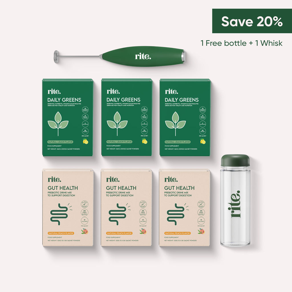 - Hydrate Smartly: Drink at least 1.5 liters of water daily to support the soluble fiber in Rite Gut Health powder, aiding optimal digestion and hydration.
